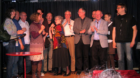 mit Rena Larf, Magda Sorour, Tom Wolf, Sabrina Schauer, Joachim Frank, Wolfgang Gogolin und an der Gitarre: Carl Cyperski (v. l.)