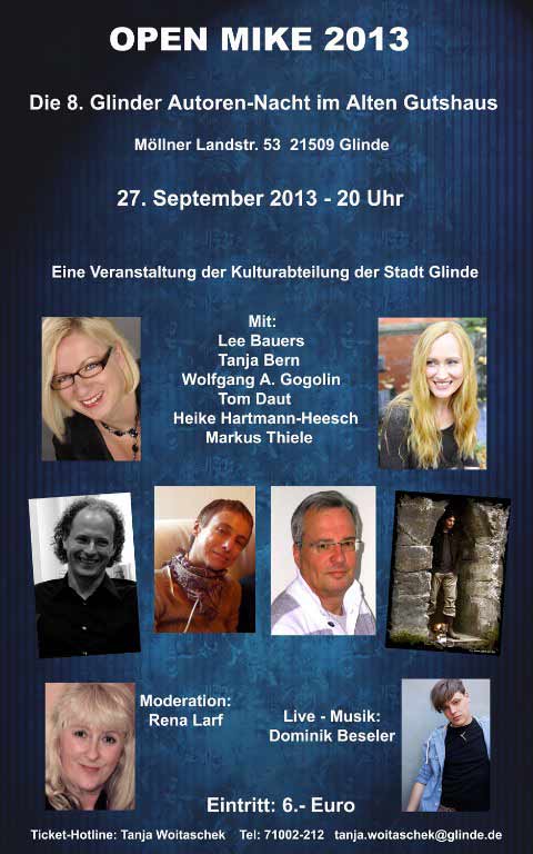 Freitag, 23. September 2011 um 20:00 Uhr im Gutshaus Glinde, Möllner Landstr. 53 in 21509 Glinde: Die 6. Glinder Autorennacht!
